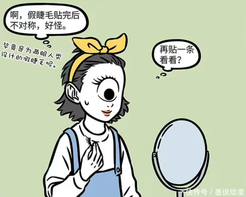 万事伊始难,不外只消尝试了就有契机发现。一目贴上假睫毛之后,合计有点差别劲。其实到这一步,这个独眼妆容还不错。不外一目合计假睫毛是为两眼的东谈主类联想的,是以她盘算再贴一条望望。