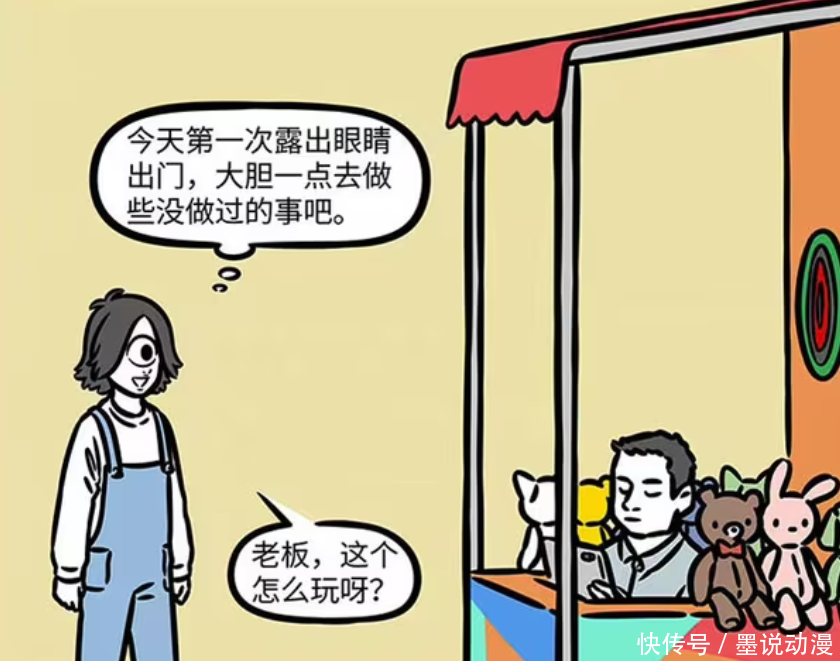 一目去掉假睫毛,第一次显露眼睛外出,她要斗胆去作念一些畴前莫得作念过的事情,比如去游乐场玩。一目问过雇主,要怎么玩这个游戏技俩。其实便是射击游戏,操作起来很简便。