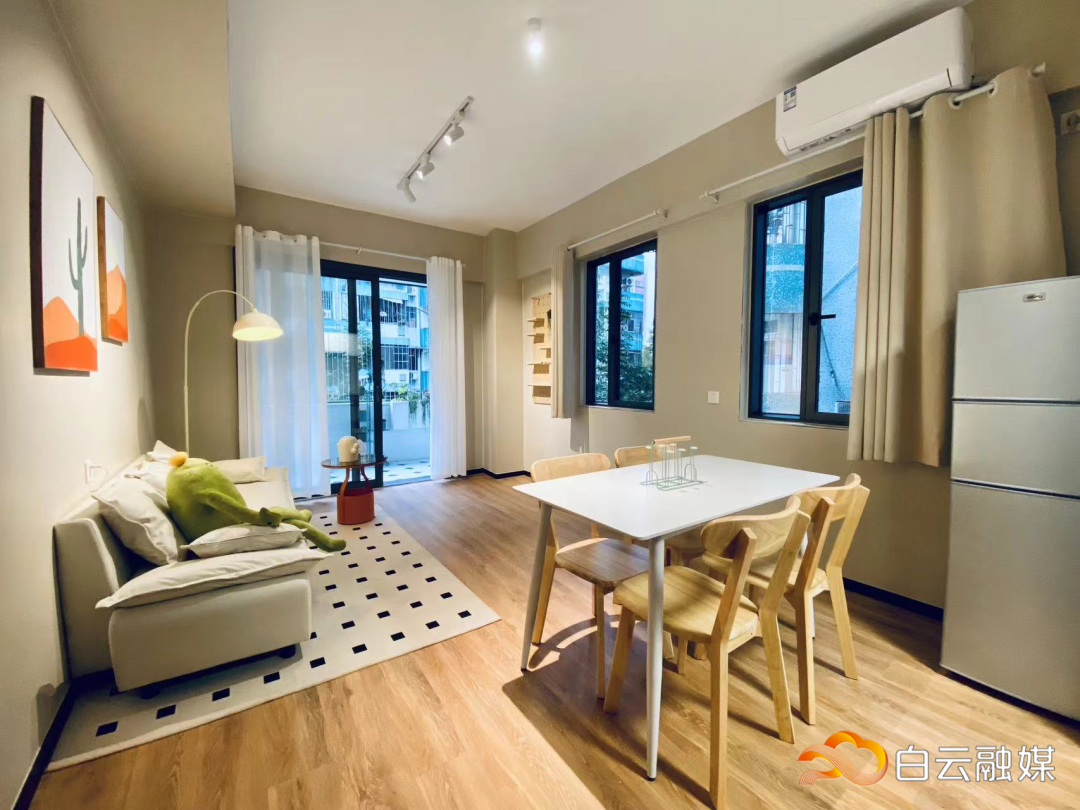 在黄石花坛小区其中一间改进公寓不错看到,改进后的公寓为检朴先锋的装修格调,沙发、睡床、空调、洗衣机、雪柜等居品家电已配皆,租客只需带上个东谈主用品即可随性入住。